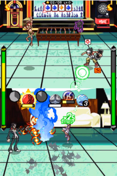 O negócio complica quando o Condutor profere: “Que o tempo fique parado!”. Neste comando, a tela fica em tons de cinza (sem piadas quanto ao livro, por favor) e o adversário marca toda uma sequência de ataques para me atingir quando o tempo voltar. Para completar, ele surge à minha frente e estende o braço em minha direção antes de proferir “Submeta-se!” e transformar o braço em um dragão, arrancando uma boa parcela do meu HP – exigindo muitos bottons de cura. Felizmente, eu já passei por coisa bem pior do que isso e não vou parar agora; após uma longa batalha e combinações ferozes com os bottons de fogo e corte, o oponente cai.
